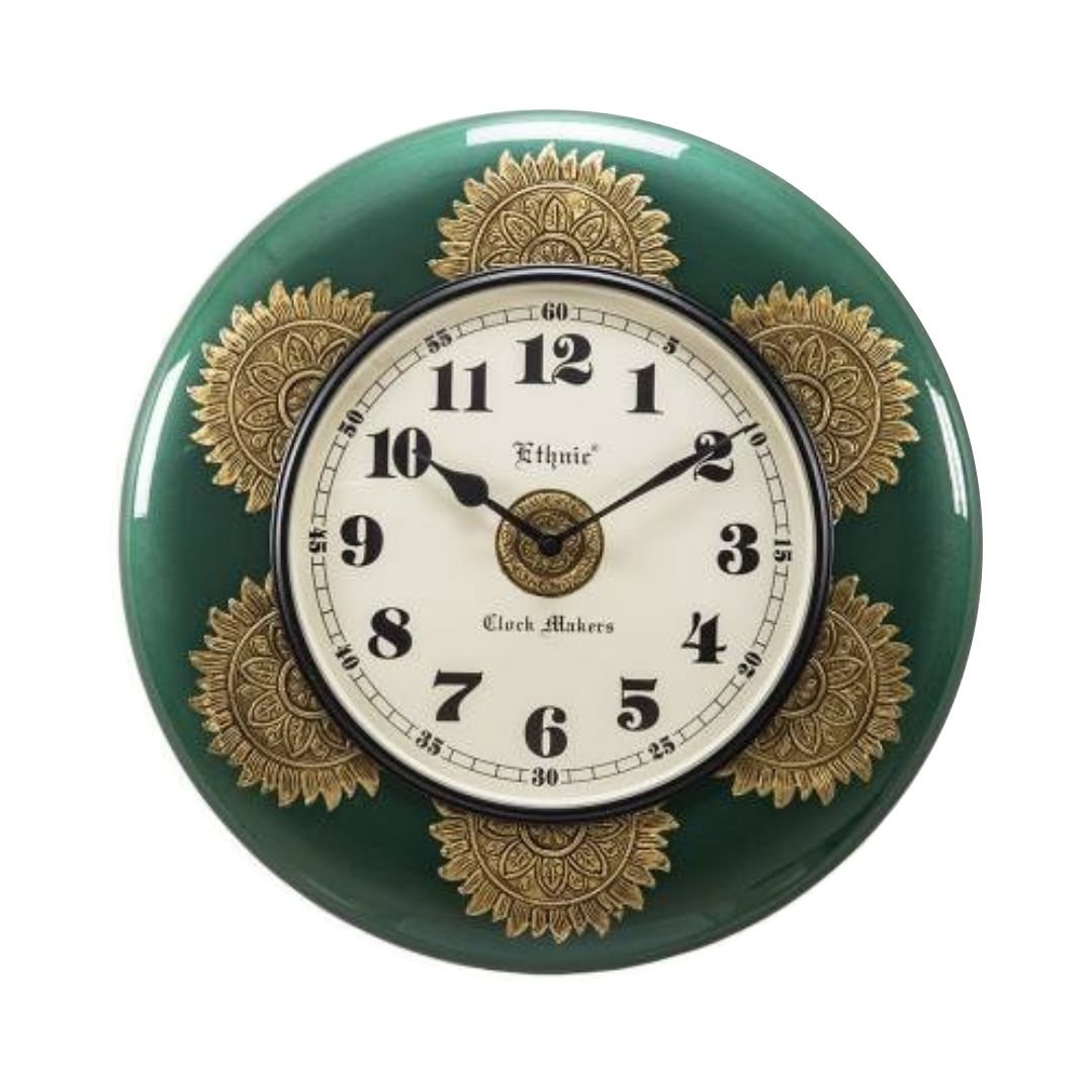 MDF wooden Case Brass metal fit- Dark Green Polish and Brass circle in Dial with dome Glass